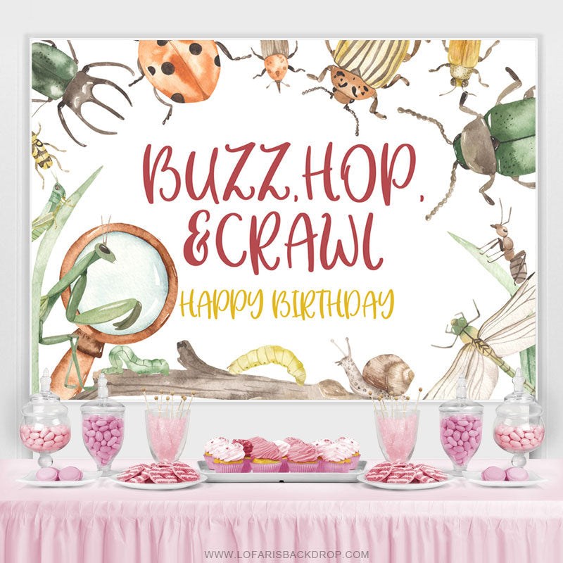 Summen Hop Ecrawl Insekt Glücklich Geburtstag Hintergrund Für Kind