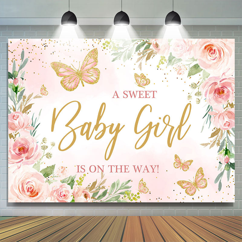 Süss Baby Gilr Ist An Der Weg Rosa Babydusche Hintergrund