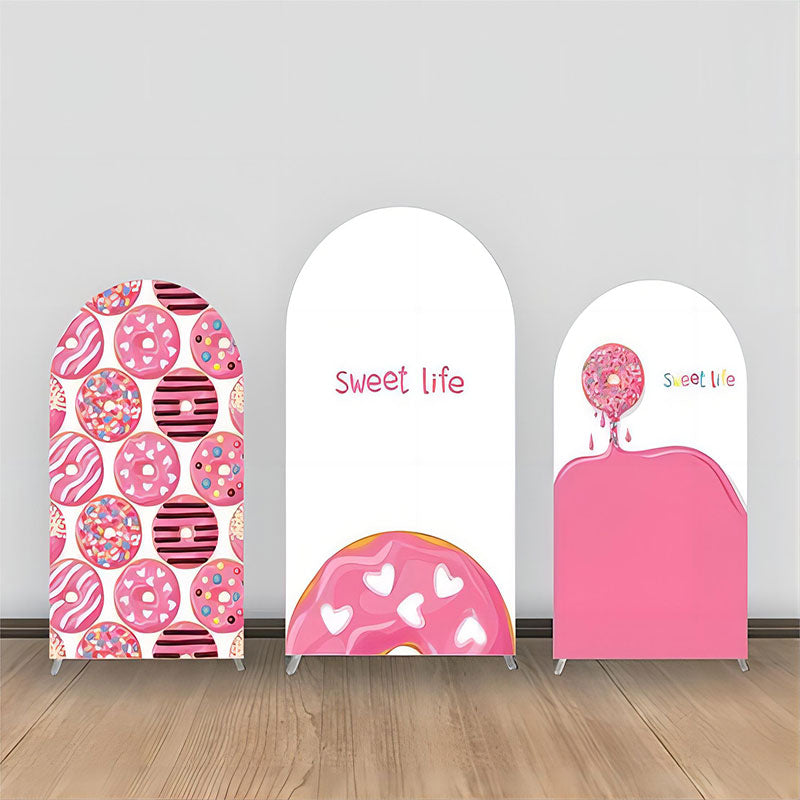 Süß Leben Rosa Weiß Donuts Creme Bogen Hintergrund Bausatz