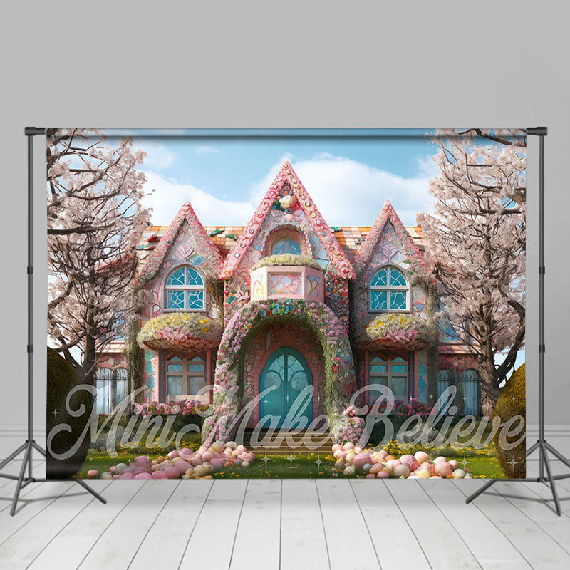 Süßigkeiten Fee Haus Sakura Baum Glücklich Ostern Hintergrund