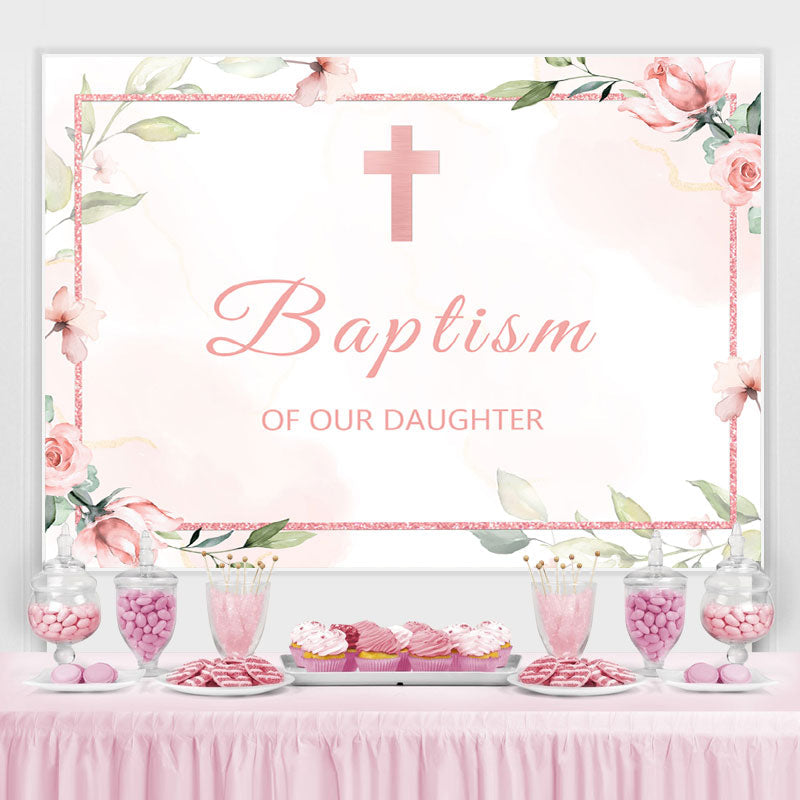 Taufe von Unser Tochter Rosa Blumen Hintergrund für Mädchen