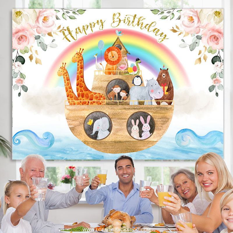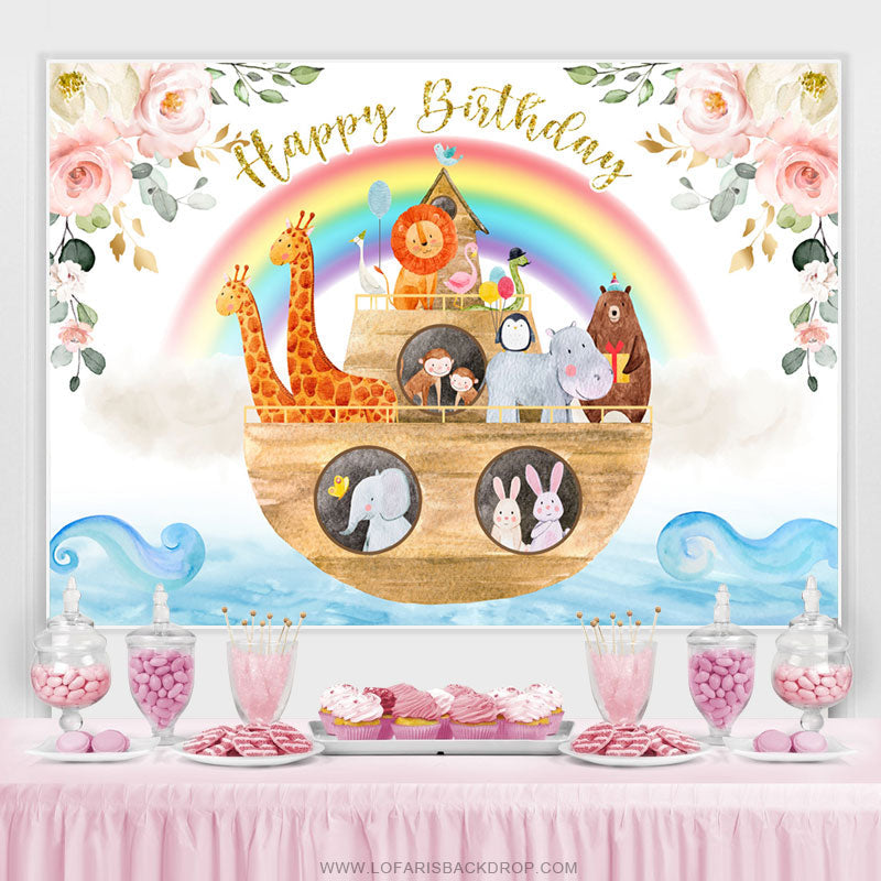 Tiere auf dem Stiefel Regenbogen Glücklich Geburtstag Hintergrund