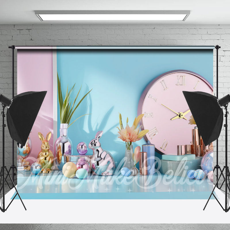 Uhr Blau Wand Niedlich Kaninchen Schmuckstücke Ostern Hintergrund