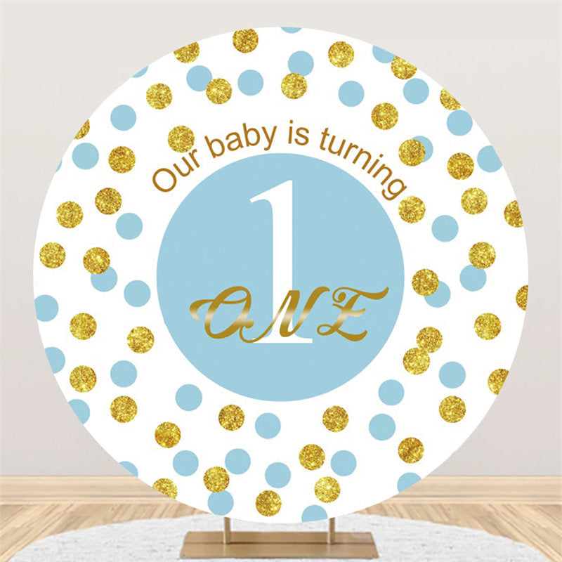 Unser Baby Ist Drehen Eins Blau Glücklich Geburtstag Runden Hintergrund