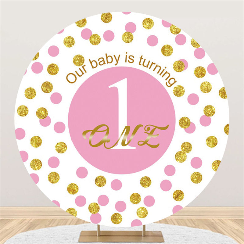 Unser Baby Ist Drehen Eins Rosa Glücklich Geburtstag Runden Hintergrund