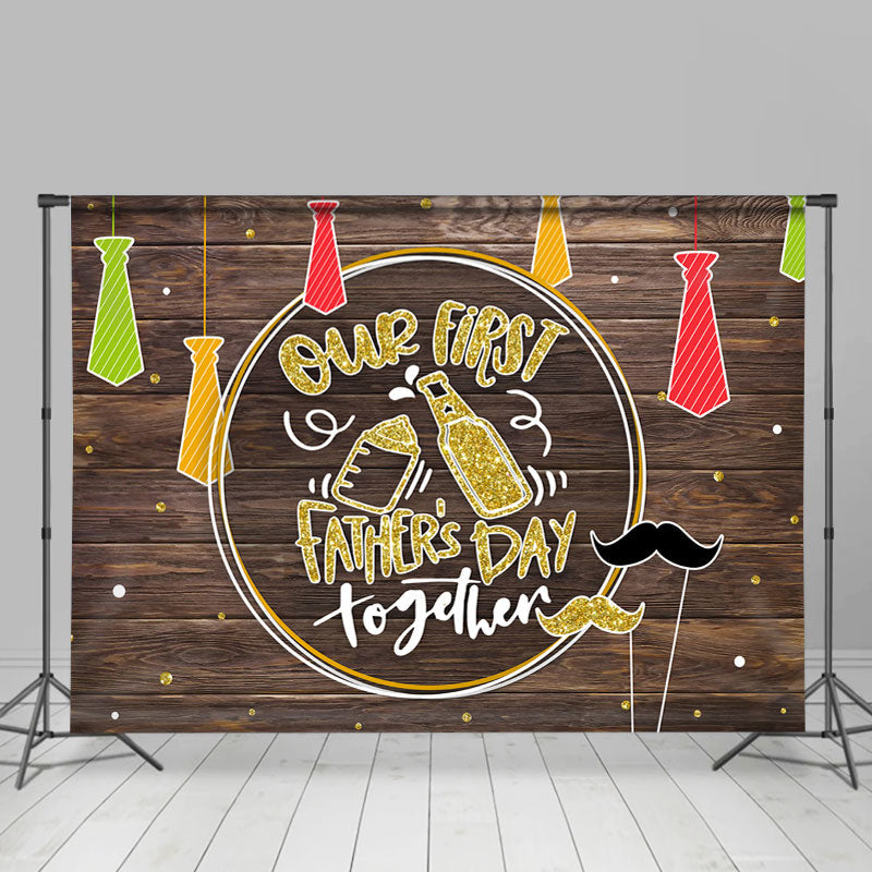 Unser Erste Väter Tag Milch Und Wein Flasche Holz Hintergrund