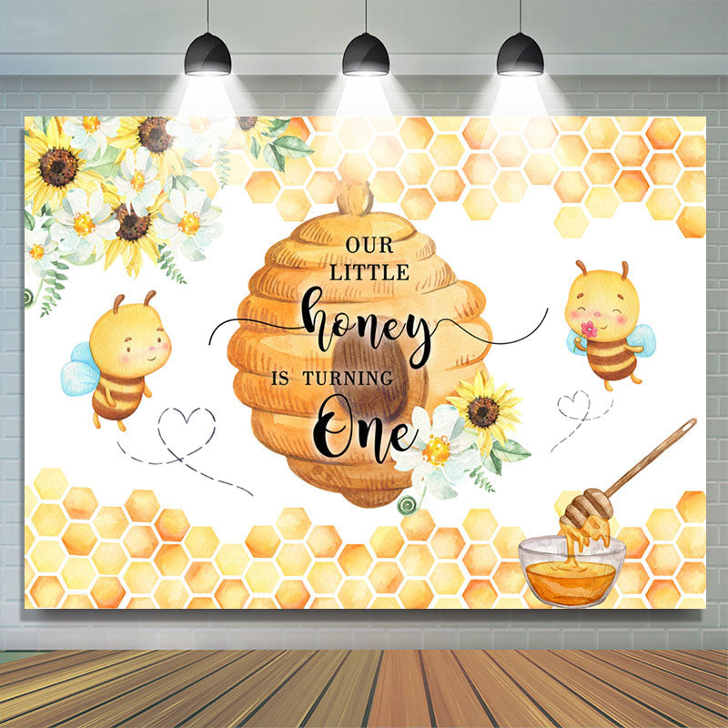 Unser Wenig Honig Ist Drehen Eins Biene Geburtstag Hintergrund