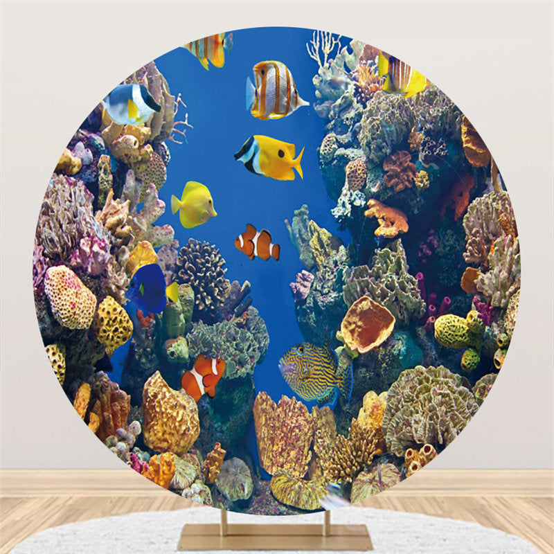 Unterwasser Welt Von Clownfisch Und Korallen Kreis Hintergrund