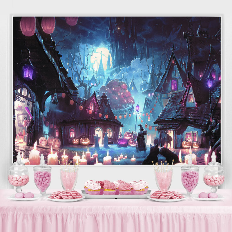Verfolgt Haus Kürbis Laterne Kerze Beängstigend Nacht Halloween Hintergrund
