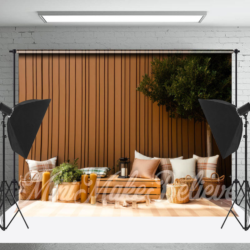 Warm Holz Wand Kissen Grün Strauch Frühling Hintergrund