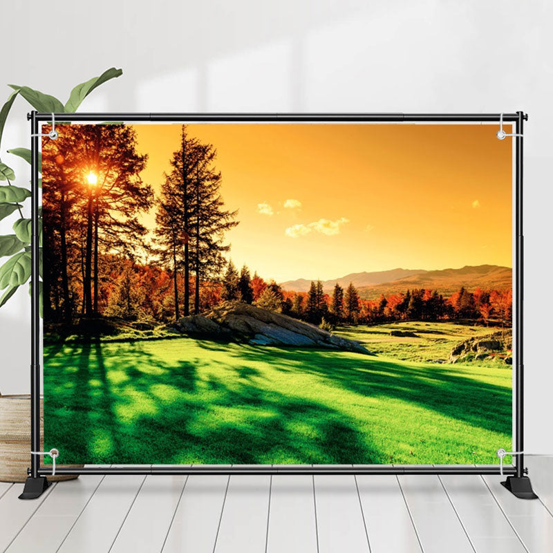 Warm Sonnenuntergang Natürlich Berg Wald Frühling Hintergrund