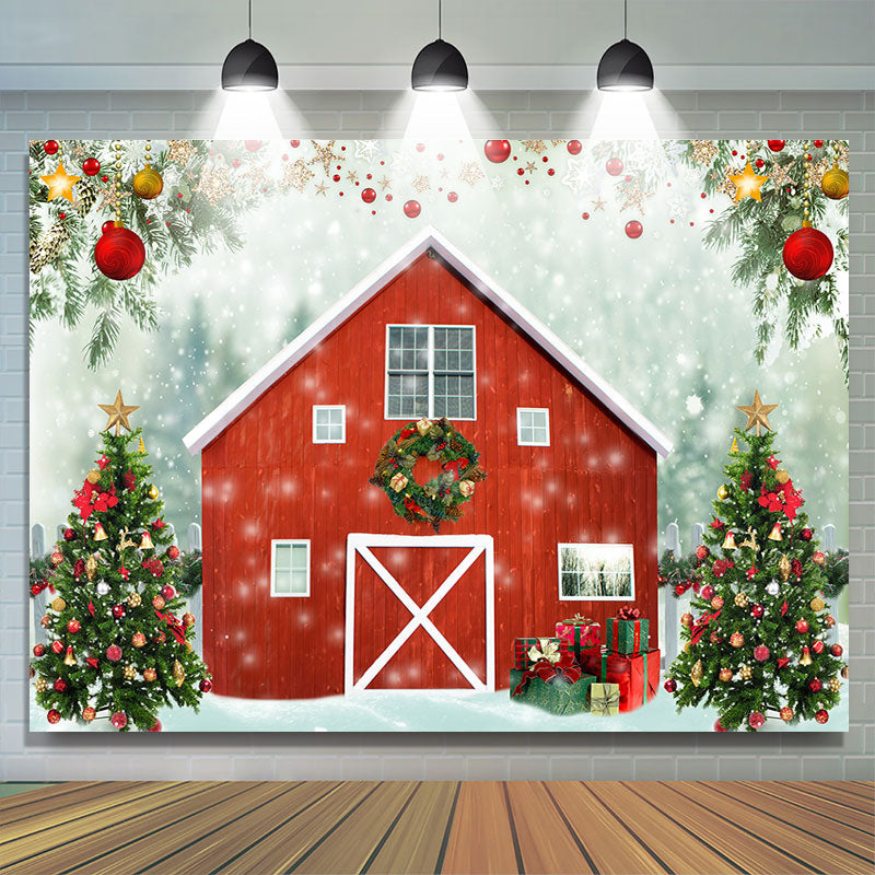 Weihnachten Baum In Die Schnee Rot Haus Weihnachten Hintergrund