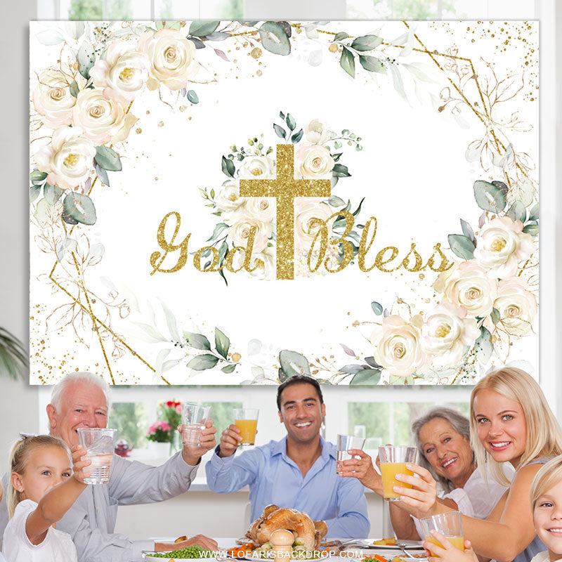 Weiss Blume Gold Gott Segnen Glücklich Geburtstag Backdorp