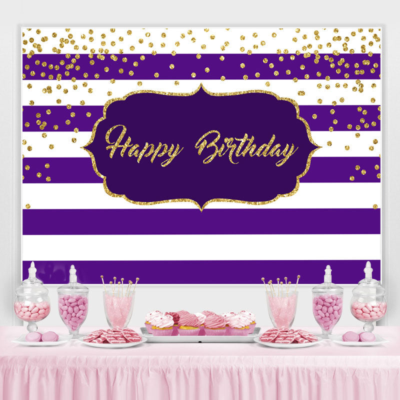 Weiß-Lila Streifen Und Gold Glücklich Geburtstag Hintergrund