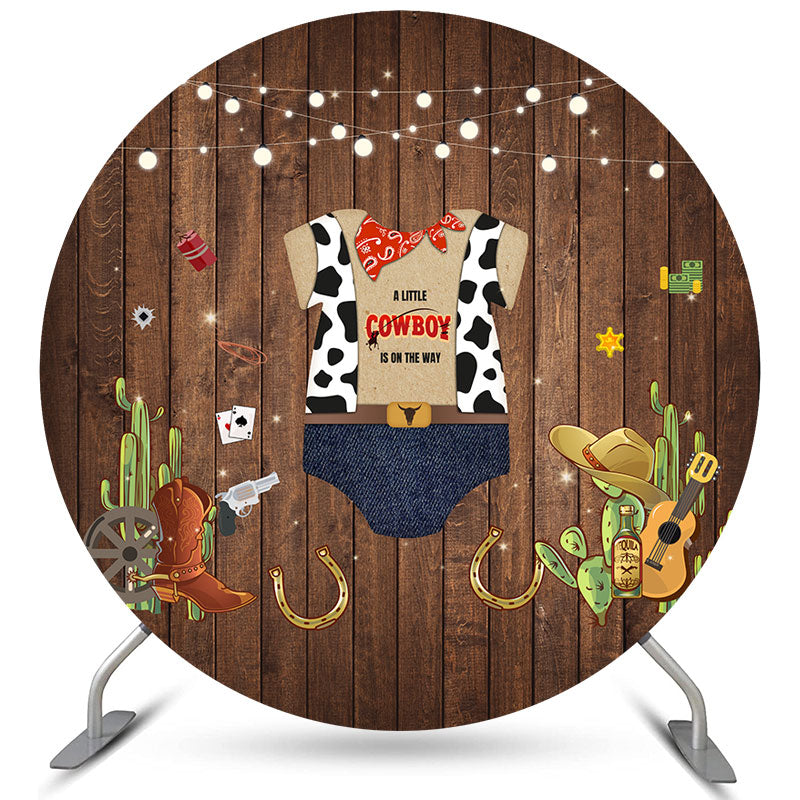 Wenig Cowboy Ist An Der Weg Runden Babydusche Hintergrund