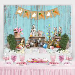 Wenig Hase Und Karotte Blau Hölzern Hintergrund Für Junge