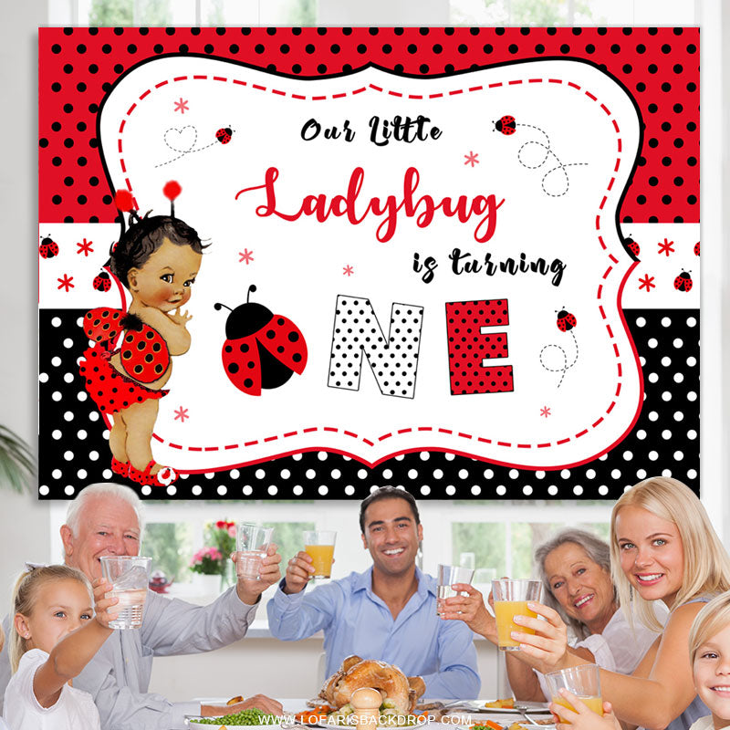 Wenig Ladybuy Ist Drehen Eins Glücklich Geburtstag Hintergrund