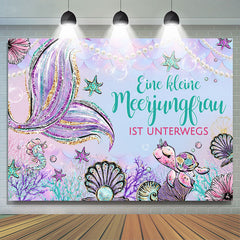 Wenig Meerjungfrau Ist An Der Weg Baby Dusche Hintergrund