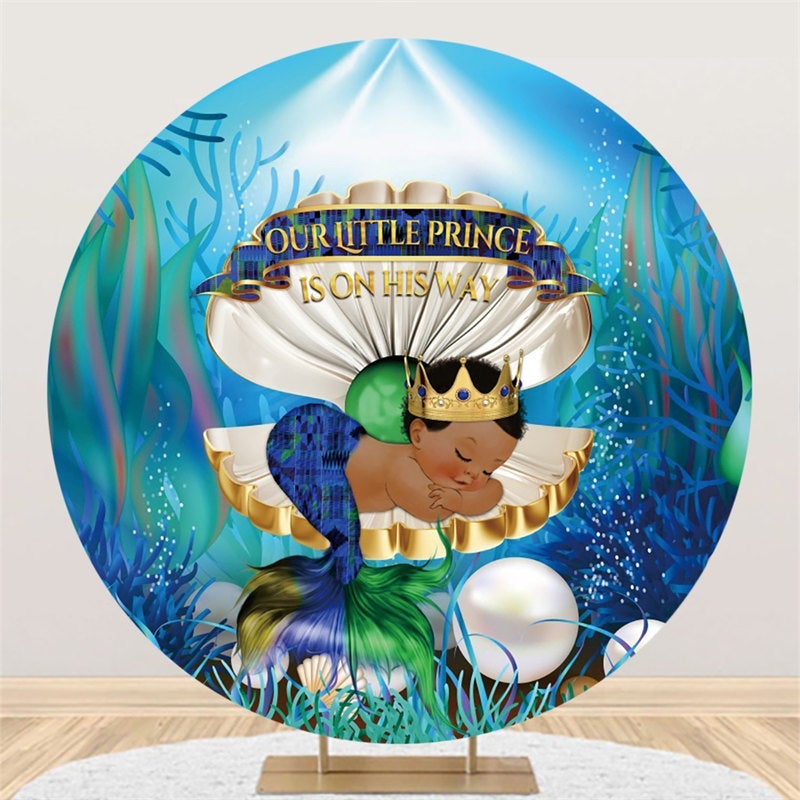Wenig Meerjungfrau Ist An Sein Weg Runden Baby Dusche Hintergrund
