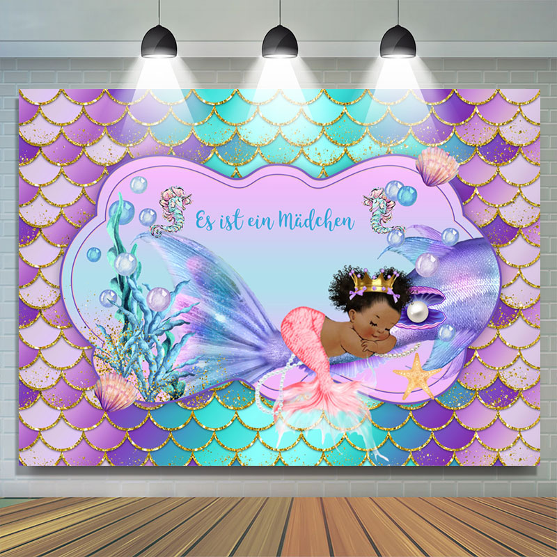 Wenig Meerjungfrau Lila Mädchen Baby Dusche Hintergrund