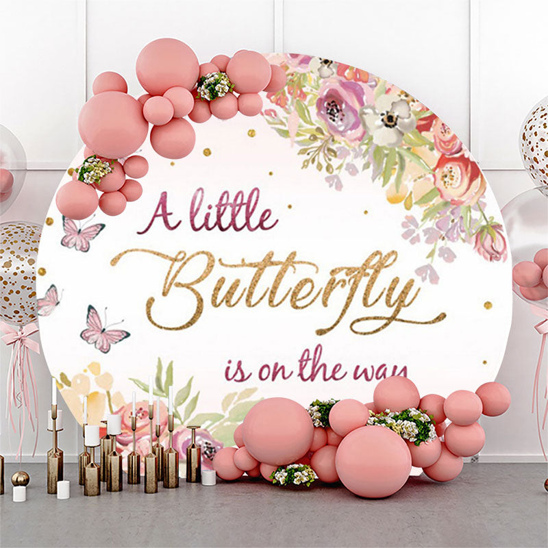 Wenig Schmetterling Ist An Der Weg Runden Babydusche Hintergrund