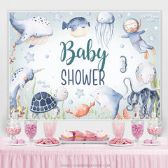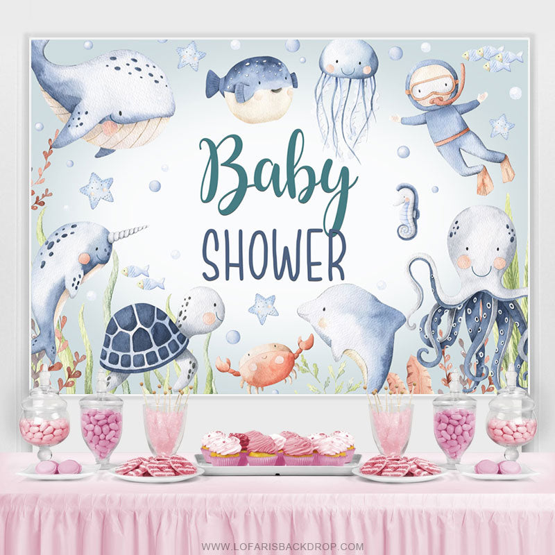 Wenig Taucher Und Unterseeisch Fische Babydusche Hintergrund
