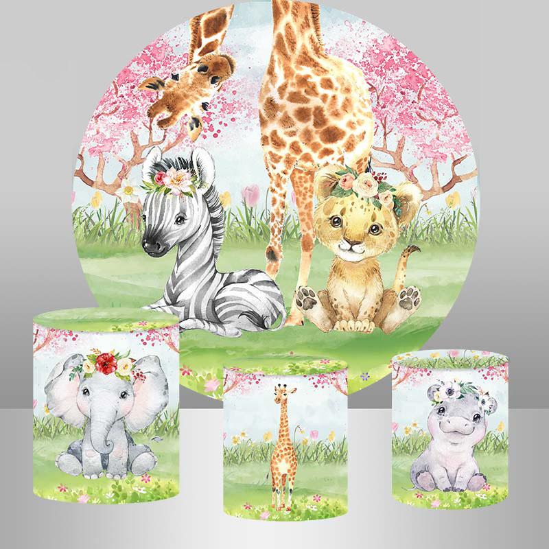 Wiese Tiere Kreis Baby Dusche Hintergrund Für Kinder