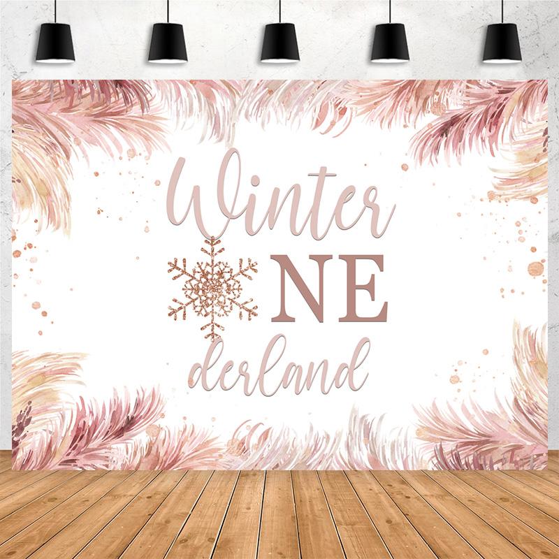 Winter Eins Derland Und Rosa Schneeflocke 1 Hintergrund