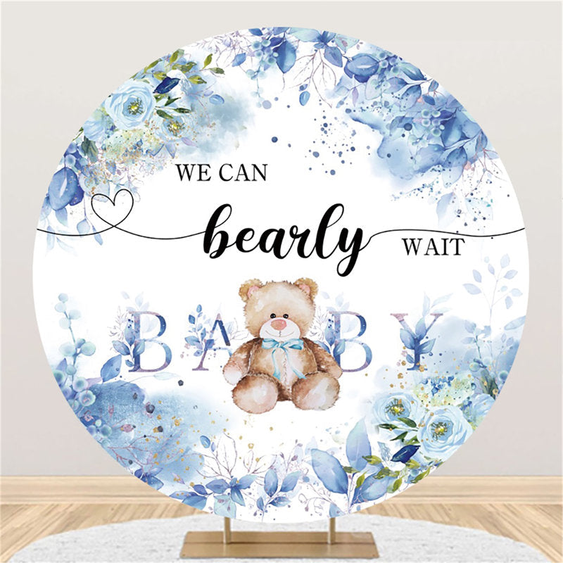 Wir Kann Bärig Warten Blau Blume Babydusche Kreis Hintergrund