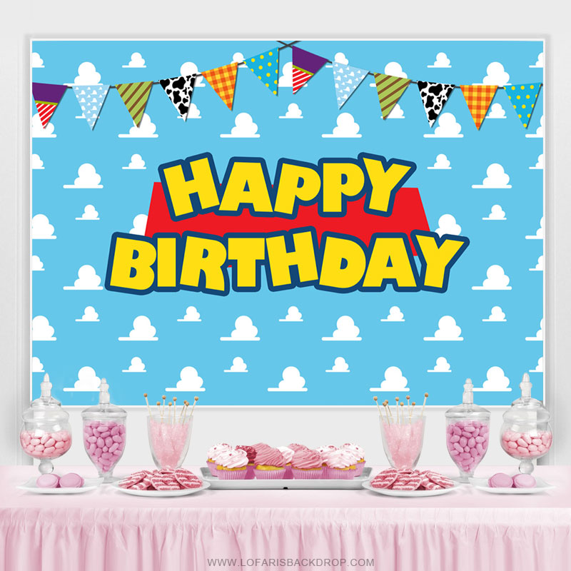 Wolken Mit Flaggen Glücklich Geburtstag Hintergrund Für Kinder