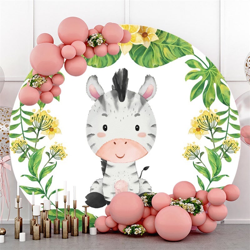 Zebra Blätter Kreis Glücklich Geburtstag Hintergrund Für Party