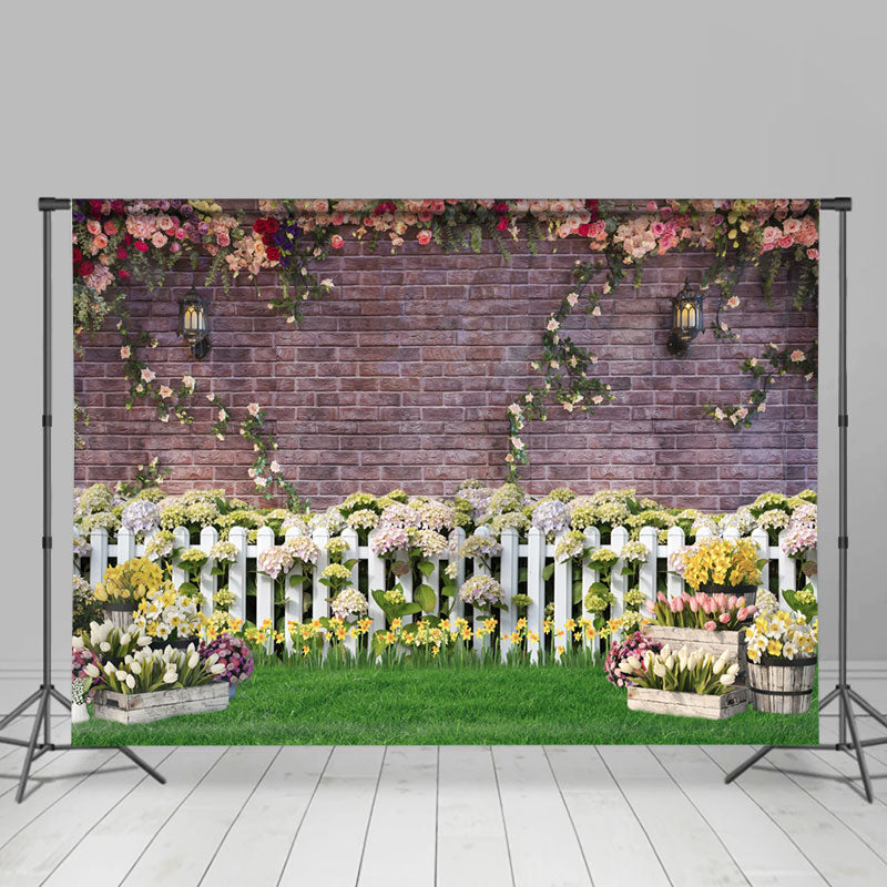 Ziegel Wand Zaun Garten Blumen Fotografie Hintergrund